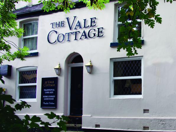 a rather grand name for a small conservation area which contain both wild flowers and a small community orchard. Sadly greatly reduced in size because of the aforementioned road widening scheme. Continuing through the garden we head down the snicket and over the Gore Brook to the Vale Cottage. There is a slightly more direct route from the Lord Nelson, but it is unlit, so this makes a safer alternative. In the summer months, because all the trees are in full leaf, the Vale Cottage is hidden in its own private world, where as in winter an inviting light shining over the front door of the pub beckons you forth. This, along with being the result of combining several cottages, with different levels and geometries, gives the establishment the feeling of a country pub - in fact this is their moniker. There is always a cosy feel to the pub as you walk in, helped at dinnertime and early evening by the home cooked meals on offer. Three ales are on the bar, Taylors Landlord is permanent, The second pump caries an ale from Moorhouses on a semi-permanent basis, changing after two or three months while a third handpumpwhich usually changes weekly. Various clubs and groups meet here and the quiz nights (Tuesday - general knowledge, Thursday - Music) are a challenge. To further enhance the country pub feel, the beer garden to the rear has been given a makeover and is already inviting and given a year or twos growth of the planting and it could become a wildlife haven.