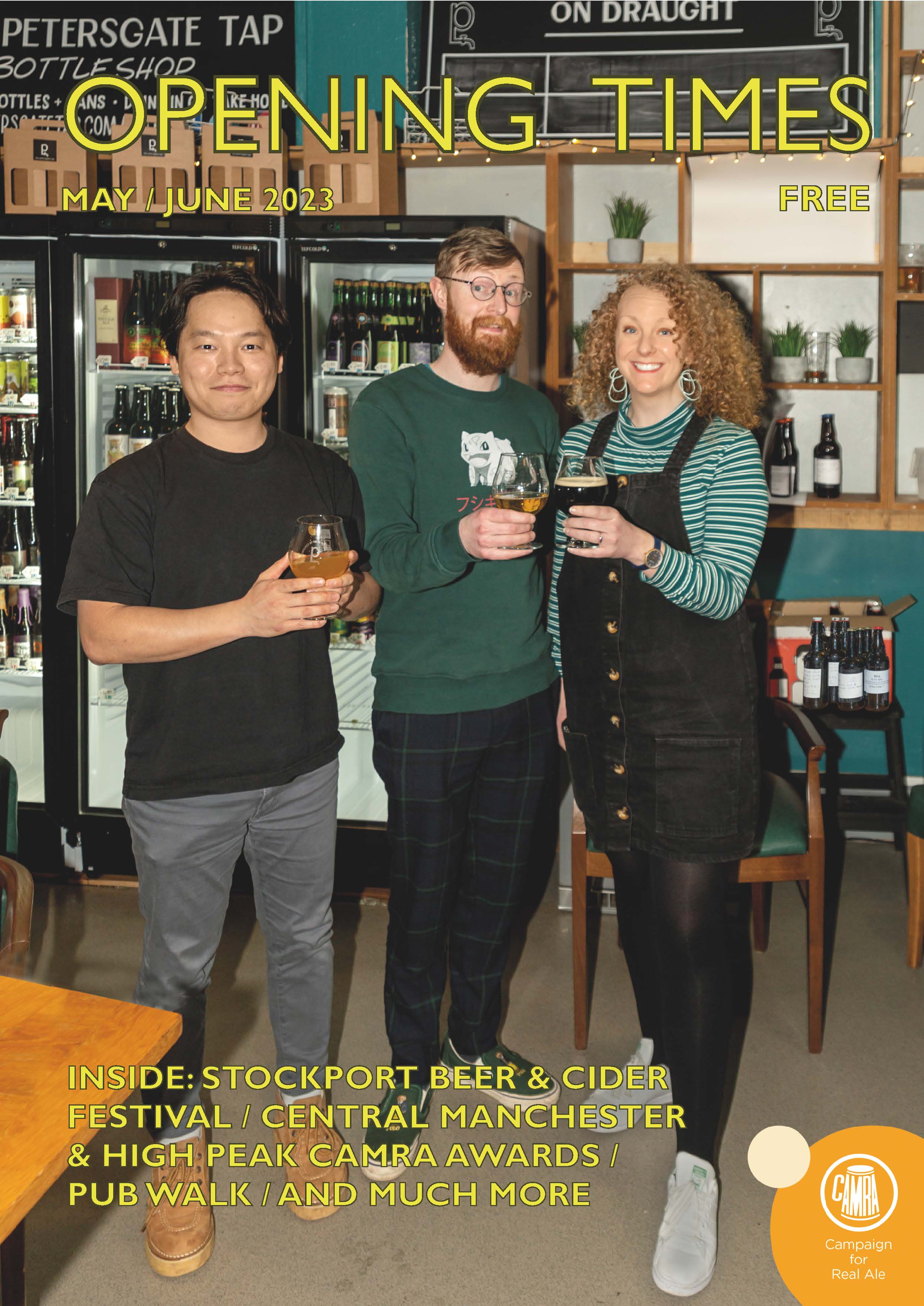 Opening Times is a bi-monthly A4 magazine covering beer, brewers, events and occasions in an area comprising (roughly) the south east of the Greater Manchester conurbation, with a little straying into High Peak and N.E. Cheshire. It is principally produced by the Stockport & South Manchester branch of the Campaign for Real Ale (CAMRA). Additional material is supplied by the High Peak & NE Cheshire branch and the Macclesfield branch.